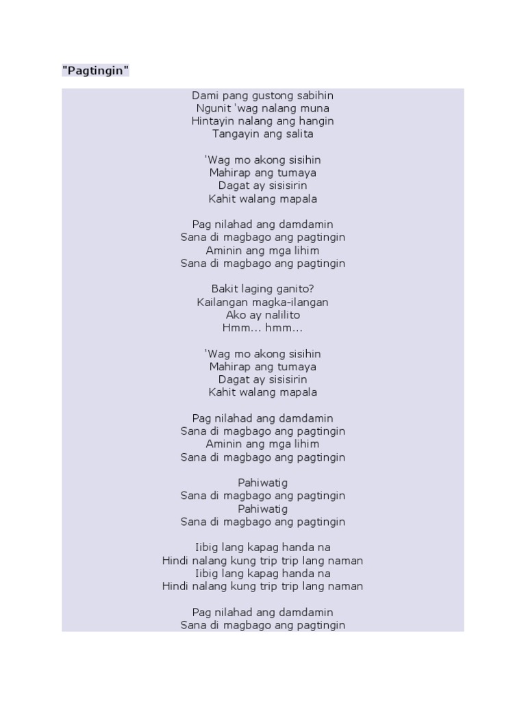 You dont even know whats really wrong but. Ngunit wag nalang muna Hintayin nalang ang hangin Tangayin ang salita Wag mo akong sisihin Mahirap ang tumaya Dagat ay sisisirin Kahit walang mapala. Dami pang gustong sabihin ngunit wag nalang muna hintayin na lang ang hangin tangayin ang salita wag mo akong sisihin mahirap ang tumaya dagat ay sisisirin kahit walang mapala pag nilahad ang damdamin sana di magbago ang pagtingin aminin ang mga lihim sana di magbago ang pagtingin.
