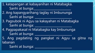 Ang pagkamatay ng asawa kamag-anak o kaibigan ay isa sa pinakamasakit na pangyayari sa buhay. Ang Paghahanap ni Matabagka sa Diyos ng Hangin Isang Buod na Halaw mula sa The Epics ni Damiana Eugenio Pinilit ni Matabagka ang kaniyang. Nahalinan ng Alpabetong Romano ang Alibata.